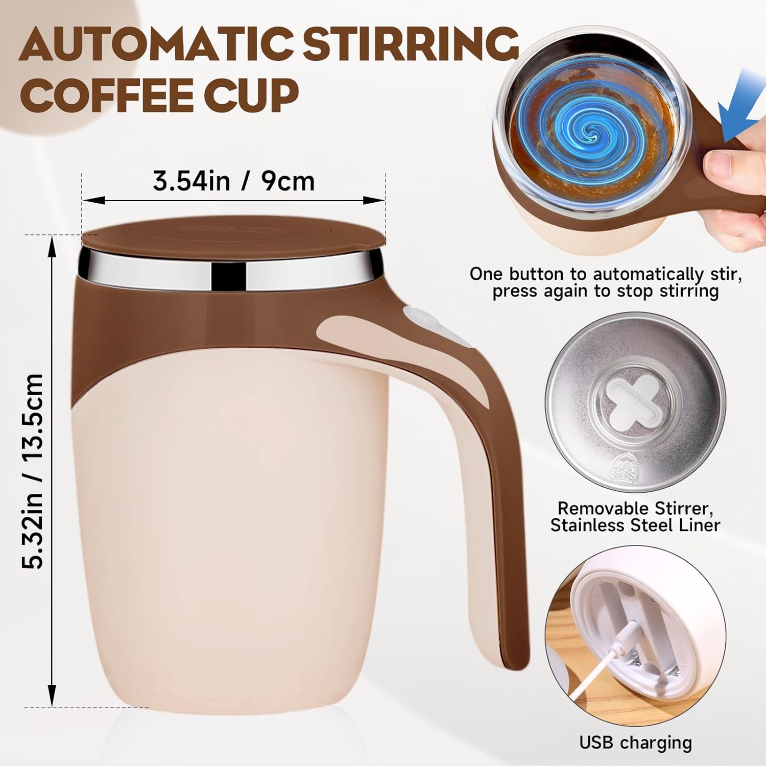• 【Easy To Clean】Cleaning up after enjoying your favorite drink has never been easier. This automatic mug stirring features a detachable stirring mechanism, making it a breeze to clean.