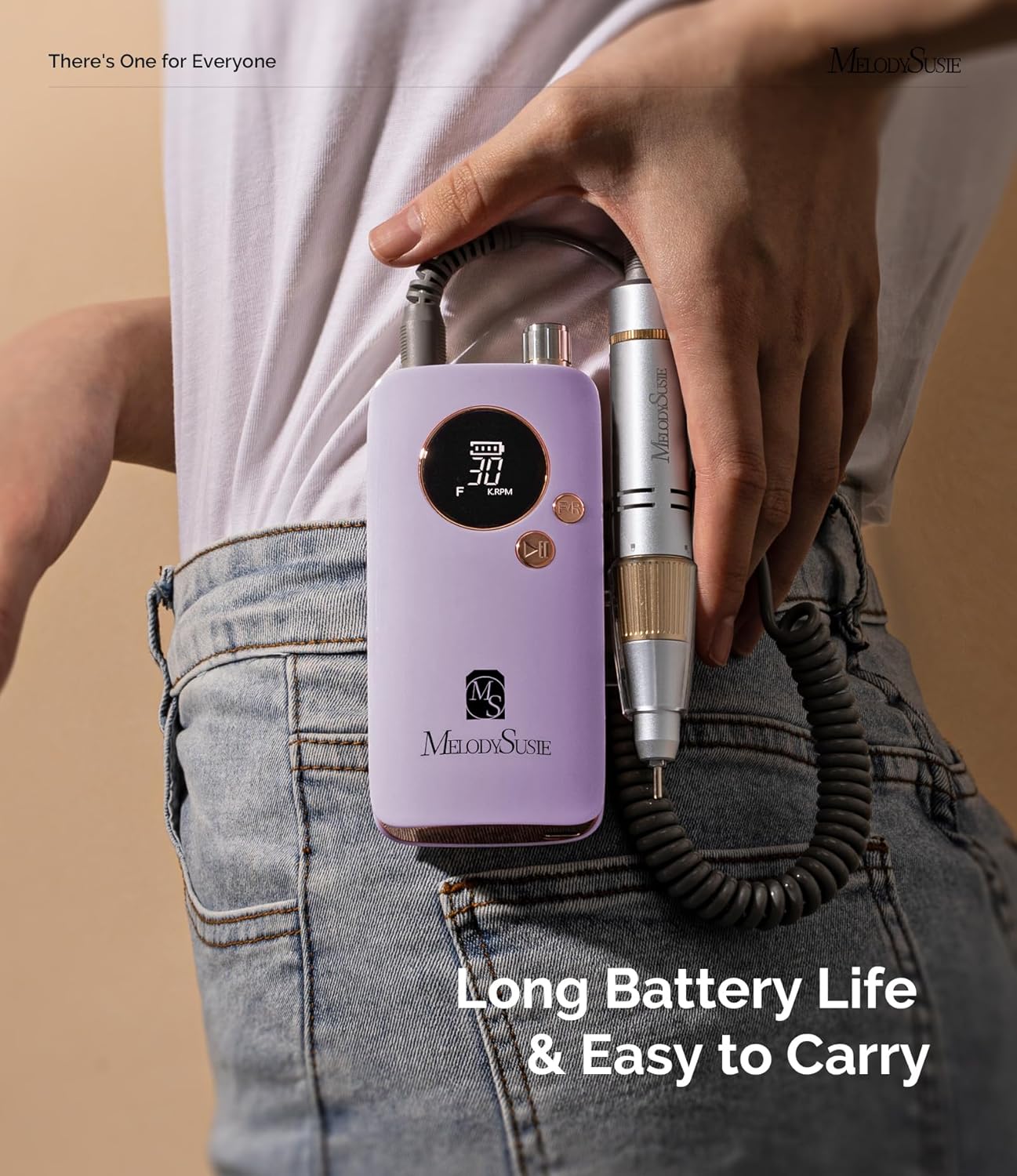 MelodySusie Portable Nail Drill 30000 RPM,Professional Rechargeable Electric Nail File,SC320F Cordless Nail E File for Acrylic Nails Gel Polishing Removing,Efile Nail Kit for Manicure Salon Home,Pink